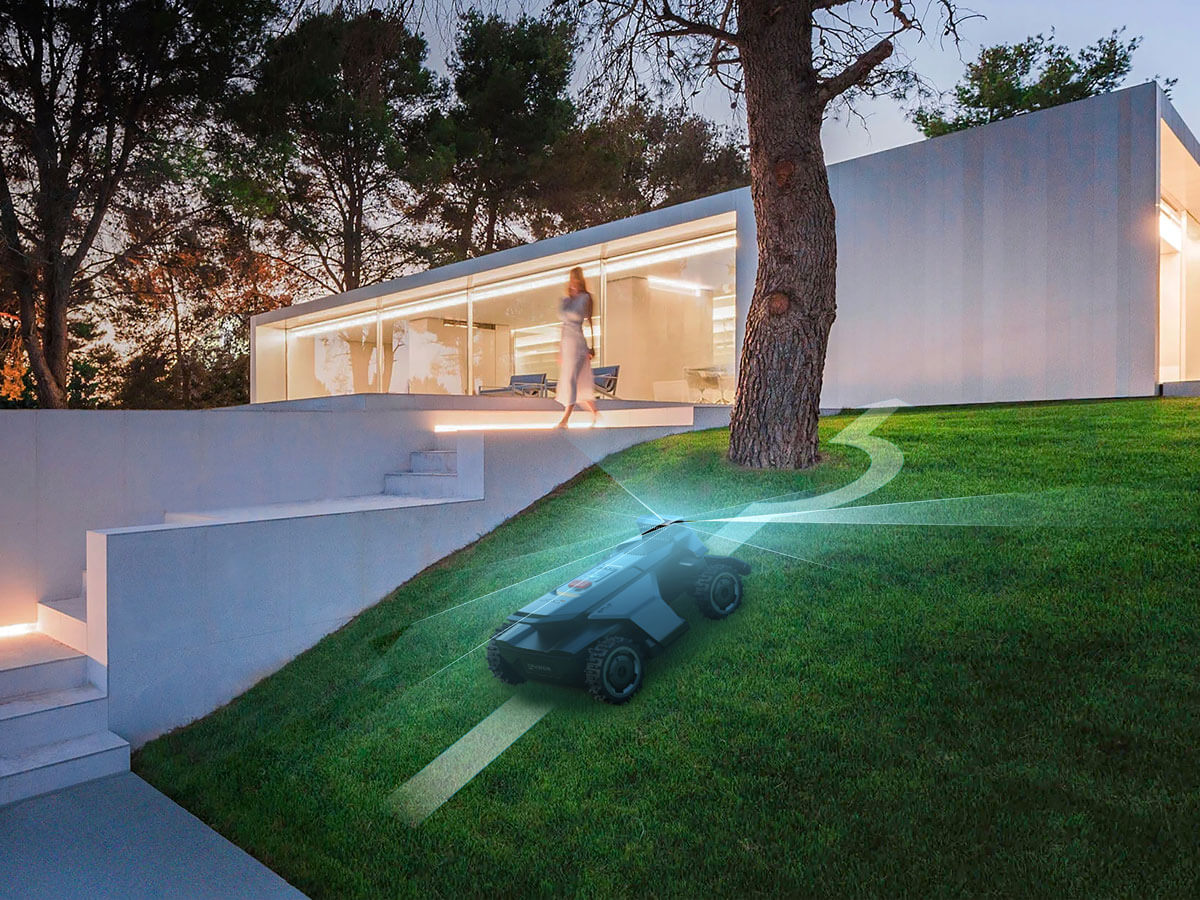 Mit EFLS™ N‑RTK, 360°‑Sensorik und automatischer GeoSketch™‑Kartierung navigiert der Mähroboter intelligent und sicher. Perfekt für große, anspruchsvolle Gärten – für eine präzise, stressfreie und effiziente Rasenpflege.